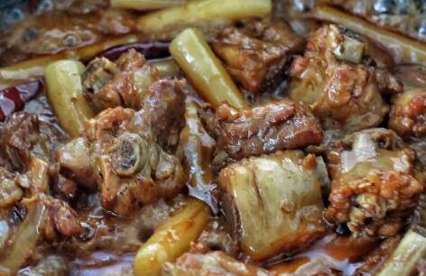 接着调入六月鲜特级原汁酱油、六月鲜红烧酱油和味达美臻品料酒,翻炒至排骨上色。
