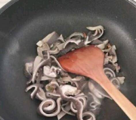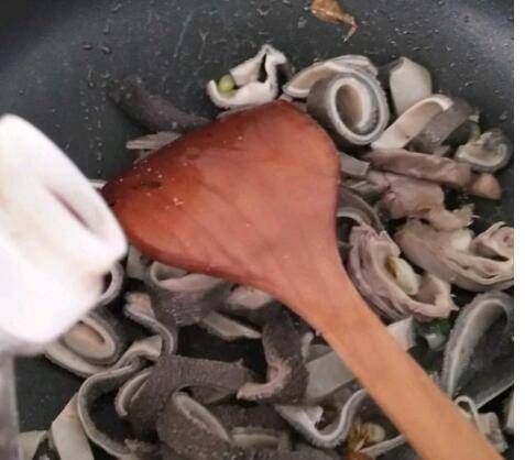 炒锅加入适量的花生油,放入葱花,炒香以后放入羊肚;