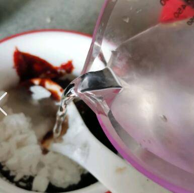 先调料汁,两勺韩式辣椒酱、一勺番茄酱、一勺白糖、一勺陈醋、一勺淀粉,半碗清水,调均匀。