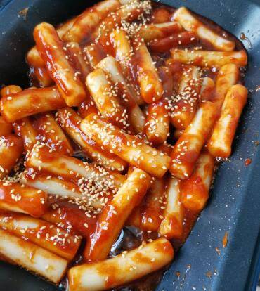 最佳答案年糕500克、韩式辣酱两勺、糖一勺、番茄酱一勺、陈醋一勺、淀粉一勺、清水半碗。先调料汁,两勺韩式辣椒酱、一勺番茄酱、一勺白糖、一勺陈醋、一勺淀粉,半碗清水,调均匀。锅中煮开水,倒入年糕煮三分钟。另取一个锅,倒少许油,倒入调好的料汁。倒入煮过的年糕,翻炒收汁,撒白芝麻。