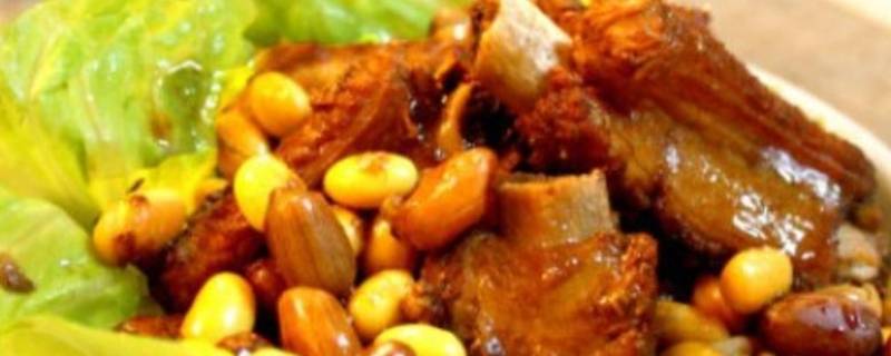 最佳答案花生米200克、排骨400g、油30g、姜片3片、糖20g、盐3g、葱两根、水700ml、老抽5ml、醋10g。花生用开水烫一下,烫去外皮红色,排骨焯水后沥干待用。起油锅,放入姜片,再放入细砂糖、排骨,进行翻炒。翻炒几次,加入水,大火烧开。放入花生米,转小火慢煮,一直煮到水差不多收干。放入小葱,盖盖子焖...