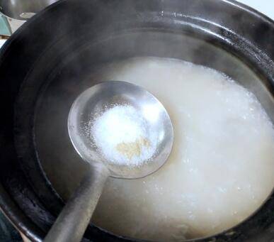 汤中加入盐,味精和胡椒粉调味。