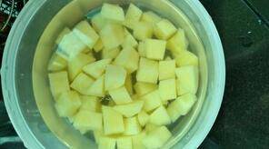 土豆去皮切丁,用清水泡去多余淀粉。