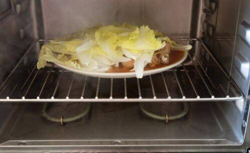 5、还剩五分钟将娃娃菜放进去继续蒸。