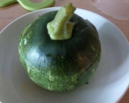 小南瓜一只,从1/4的地方切开,去瓤,可以留下瓤炒别的菜用。