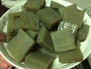 皮扎切3mm厚,3cm长的方块。