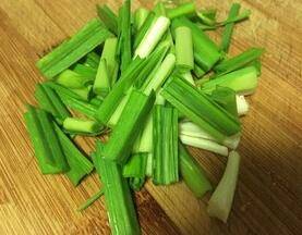 蒜苗洗净晾干,切3cm左右的段。