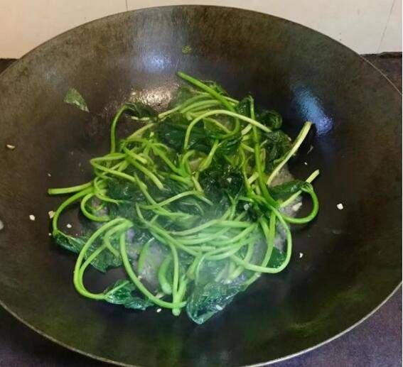 准备食材:薯苗400克、油5克、盐4克、蒜5克。薯苗洗净,蒜子剁成蒜末;热油锅,放入蒜末爆香;放入薯苗,翻炒至软;加入盐调味,在炒2分钟即可。