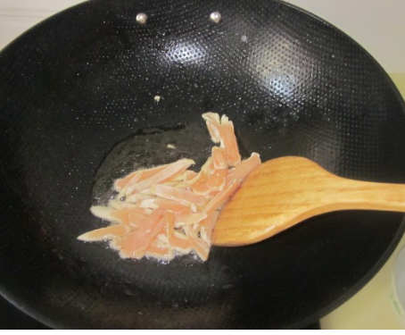 鸡脯肉切宽条,尖椒、胡萝卜切宽条,葱姜切片,蘑菇挤干水分;