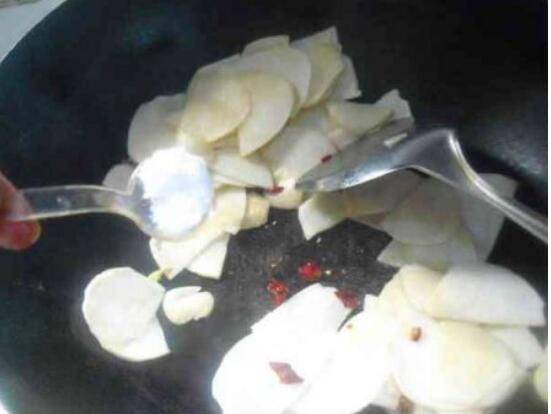 加入适量盐炒至地瓜变色即成。