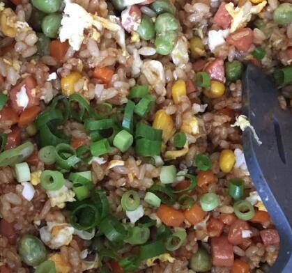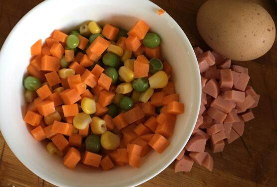 最佳答案鸡蛋2个、玉米30g、胡萝卜150g、青豆20g、盐1g、生抽15g、老抽少许、油20g、白米饭1碗、蚝油1勺。胡萝卜洗净切丁,火腿肠切丁备用。胡萝卜和豌豆粒、玉米粒一起放入锅中,煮3-5分钟捞出。锅中放油,磕入鸡蛋炒熟盛出。锅中再加一点点油,倒入火腿丁炒出香味,再倒入蔬菜丁翻炒均匀,加入米饭炒散。...
