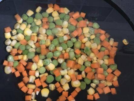胡萝卜和豌豆粒、玉米粒一起放入锅中,煮3-5分钟捞出。