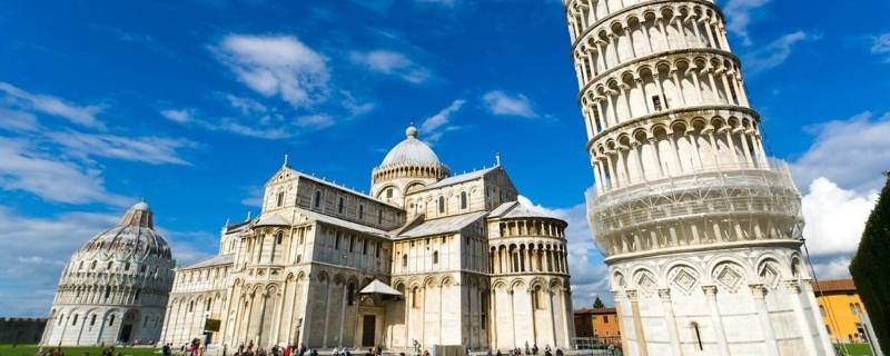 1、比萨斜塔坐落在意大利西部古城比萨的教堂广场上,是比萨主教堂综合建筑中的钟塔。亦是建筑群中最著名的建筑。比萨斜塔建于1174 年,1350年竣工,全部用大理石砌成。