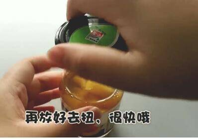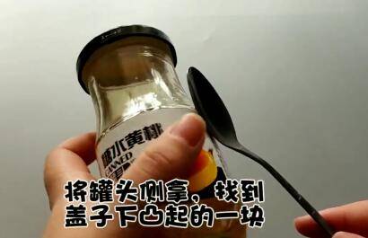 用勺子抵住,用力翘几下即可轻松去盖。