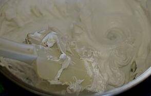 糖粉分三次加入蛋清中,打发至硬性即成糖霜;