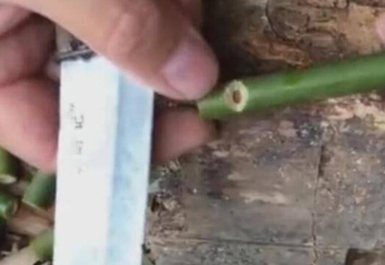 1、找来一节拇指粗细的长竹子。金丝竹最好,将这节竹子裁成9小节。第一节做身子,稍长,一般是其他小节的2倍多。其他8小节等同长短,作为竹节人的手和脚,如果竹节参差不齐,竹节人的手脚也会长短不一。