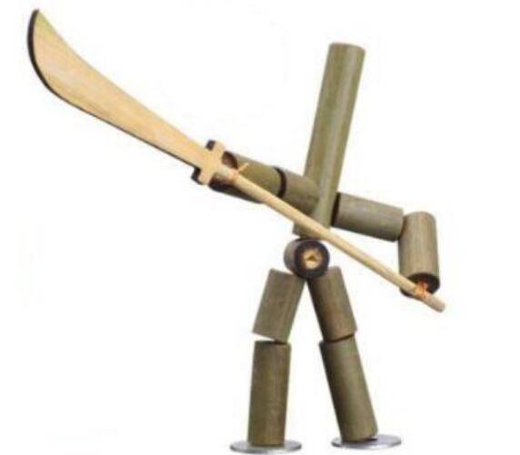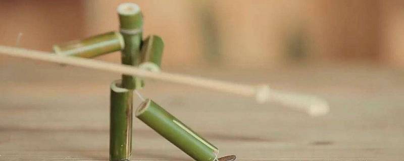 4、竹节人的玩法,可以把有着九个竹节的鞋线嵌入课桌裂缝里,从下面拉紧,在裂缝上的竹节人就站起来,叉腿张胳膊、将鞋线一松一紧,竹节人就会动起来。两个竹节人放在一起,也可以进行搏斗。