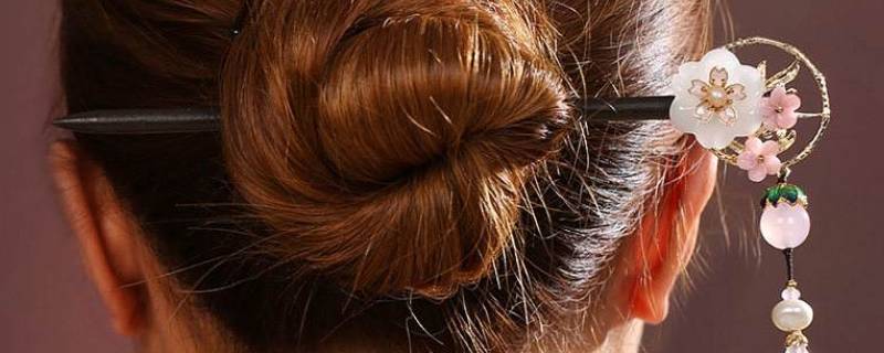 3、直直插入一个发簪,再在旁边再插入一个发簪。