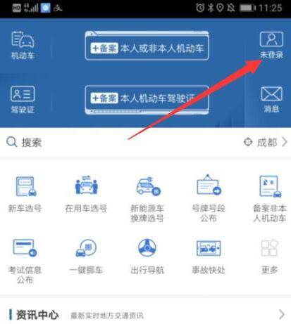 1、打开交管12123软件,点击右上方的登录。
