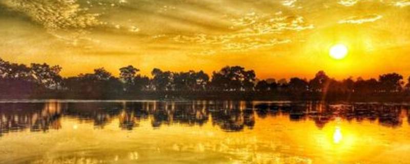 先有日出才有朝霞,朝霞就是在日出的时候被照亮的云彩。日出也是一种计时的单位,在古代十二时辰制中,日出是第四个时辰,对应十二地支是卯时,指早上5点至7点。日出时间很短暂,当太阳由东方地平线升起那一刻称为日出。