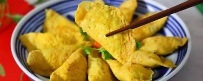 蛋皮半干时加入肉馅,注意,不能等蛋皮完全成形再加入肉馅,会包不住。