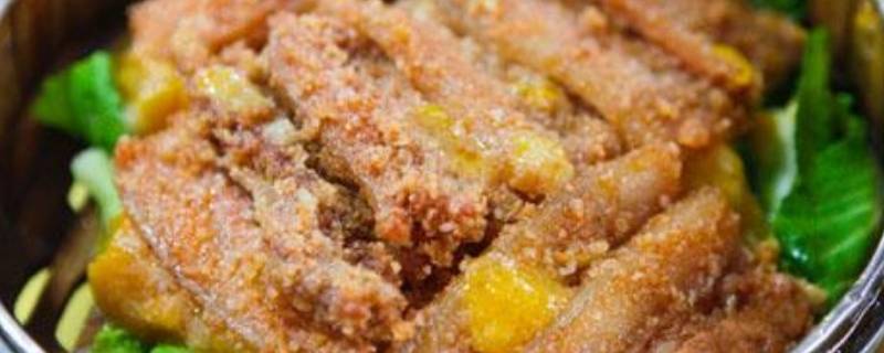 准备食材:猪肉、葱、姜、盐、生抽、料酒、蒸肉米粉。猪肉切片,放入碗中,加入葱和姜、盐、生抽、料酒、蒸肉米粉。搅拌均匀腌制1小时。倒入盘中。水开后,上锅蒸1小时即可。