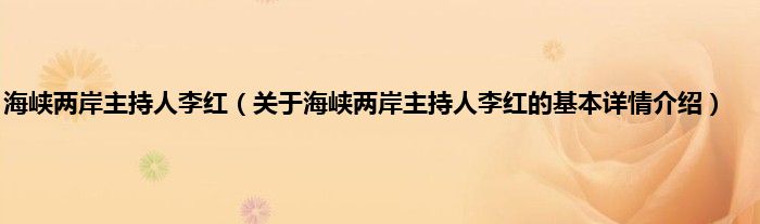本文关于海峡两岸主持人李红的基本详情介绍就讲解完毕,希望对大家有所帮助。