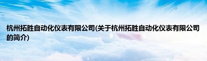 杭州拓胜自动化仪表有限公司(关于杭州拓胜自动化仪表有限公司的简介)