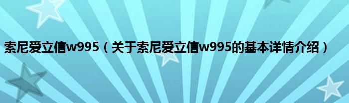 本文关于索尼爱立信w995的基本详情介绍就讲解完毕,希望对大家有所帮助。
