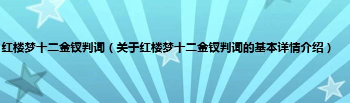 本文关于红楼梦十二金钗判词的基本详情介绍就讲解完毕,希望对大家有所帮助。