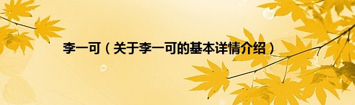 本文关于李一可的基本详情介绍就讲解完毕,希望对大家有所帮助。