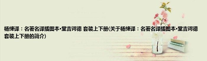本文关于杨绛译:名著名译插图本·堂吉诃德 套装上下册的简介就讲解完毕,希望对大家有所帮助。