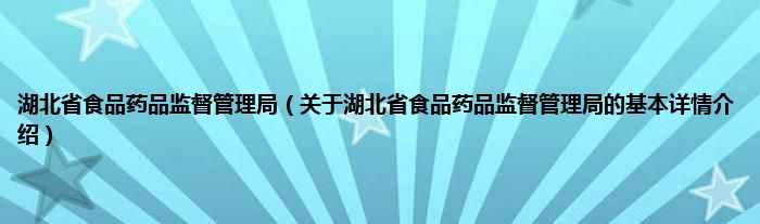 湖北省食品药品监督管理局(关于湖北省食品药品监督管理局的基本详情介绍)