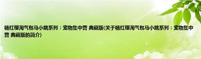 杨红樱淘气包马小跳系列:宠物集中营典藏版(关于杨红樱淘气包马小跳系列:宠物集中营...
