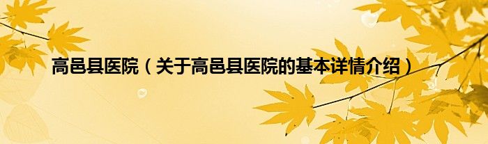 高邑县医院(关于高邑县医院的基本详情介绍)