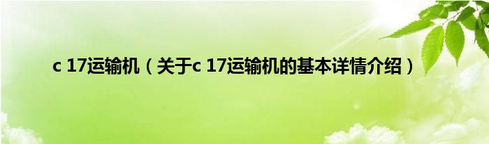 本文关于c 17运输机的基本详情介绍就讲解完毕,希望对大家有所帮助。