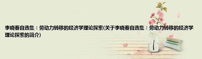本文关于李晓春自选集:劳动力转移的经济学理论探索的简介就讲解完毕,希望对大家有所帮助。