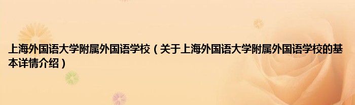 本文关于上海外国语大学附属外国语学校的基本详情介绍就讲解完毕,希望对大家有所帮助。