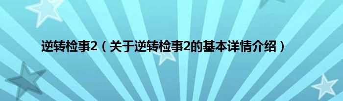 本文关于逆转检事2的基本详情介绍就讲解完毕,希望对大家有所帮助。