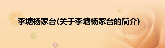 大家好,李塘杨家台,关于李塘杨家台的简介很多人还不知道,现在让我们一起来看看吧!