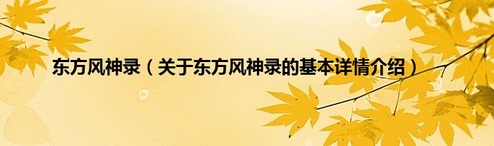 本文关于东方风神录的基本详情介绍就讲解完毕,希望对大家有所帮助。