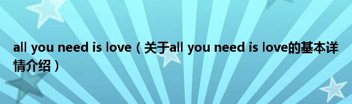 本文关于all you need is love的基本详情介绍就讲解完毕,希望对大家有所帮助。