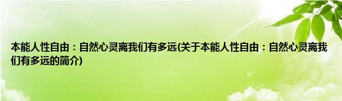 本文关于本能人性自由:自然心灵离我们有多远的简介就讲解完毕,希望对大家有所帮助。