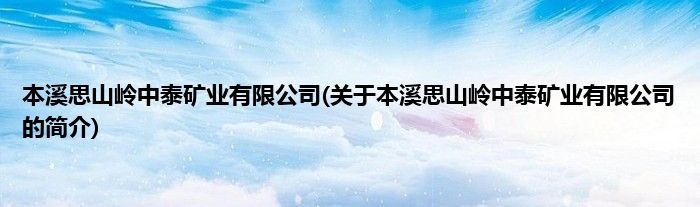 本文关于本溪思山岭中泰矿业有限公司的简介就讲解完毕,希望对大家有所帮助。