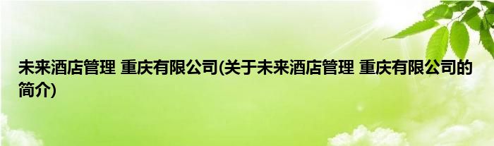本文关于未来酒店管理 重庆有限公司的简介就讲解完毕,希望对大家有所帮助。