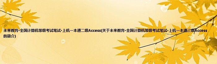 本文关于未来教育·全国计算机等级考试笔试·上机一本通二级Access的简介就讲解完毕,希望对大家有所帮助。