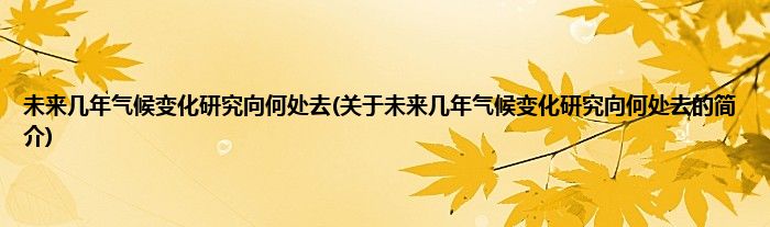 未来几年气候变化研究向何处去(关于未来几年气候变化研究向何处去的简介)