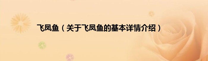 本文关于飞凤鱼的基本详情介绍就讲解完毕,希望对大家有所帮助。