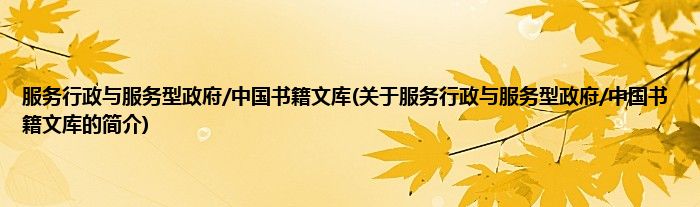 本文关于服务行政与服务型政府/中国书籍文库的简介就讲解完毕,希望对大家有所帮助。