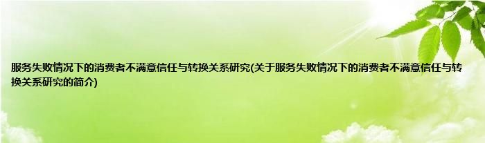 本文关于服务失败情况下的消费者不满意信任与转换关系研究的简介就讲解完毕,希望对大家有所帮助。